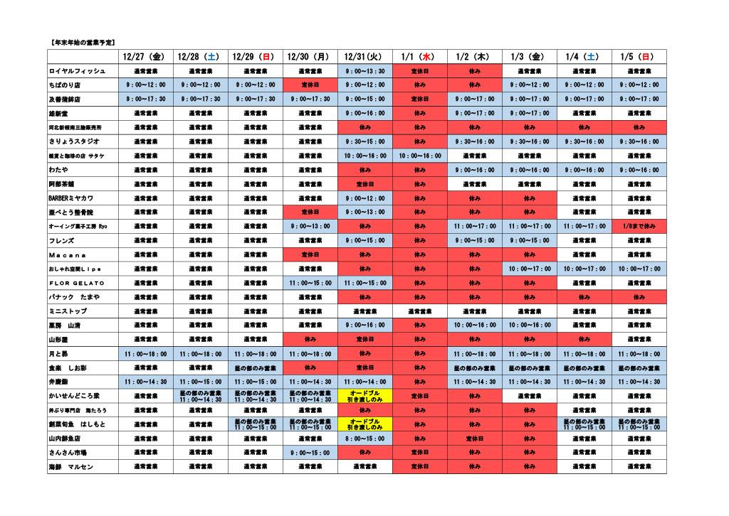 12/27(金)~1/5(日) 休業