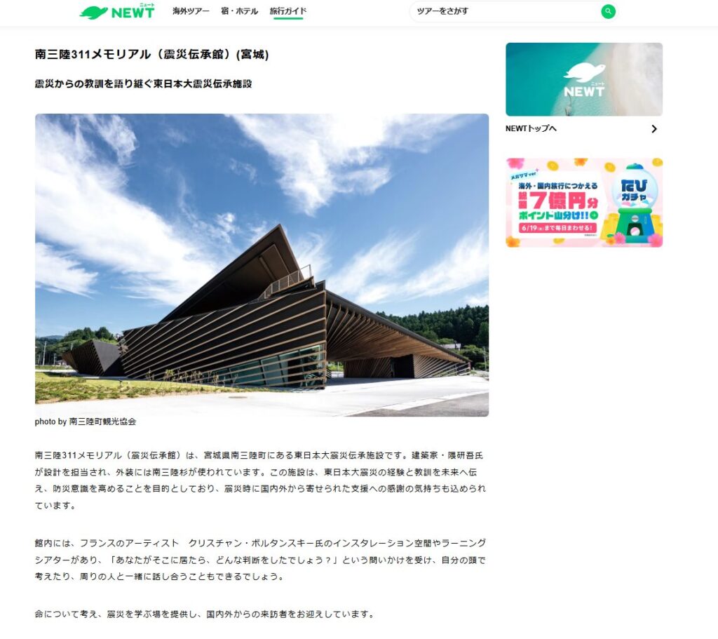 南三陸311メモリアルについて掲載いただきました。その他東北のオススメおでかけ情報がいっぱい。ご家族でのご旅行にぴったりの情報が満載です。ぜひご覧ください。