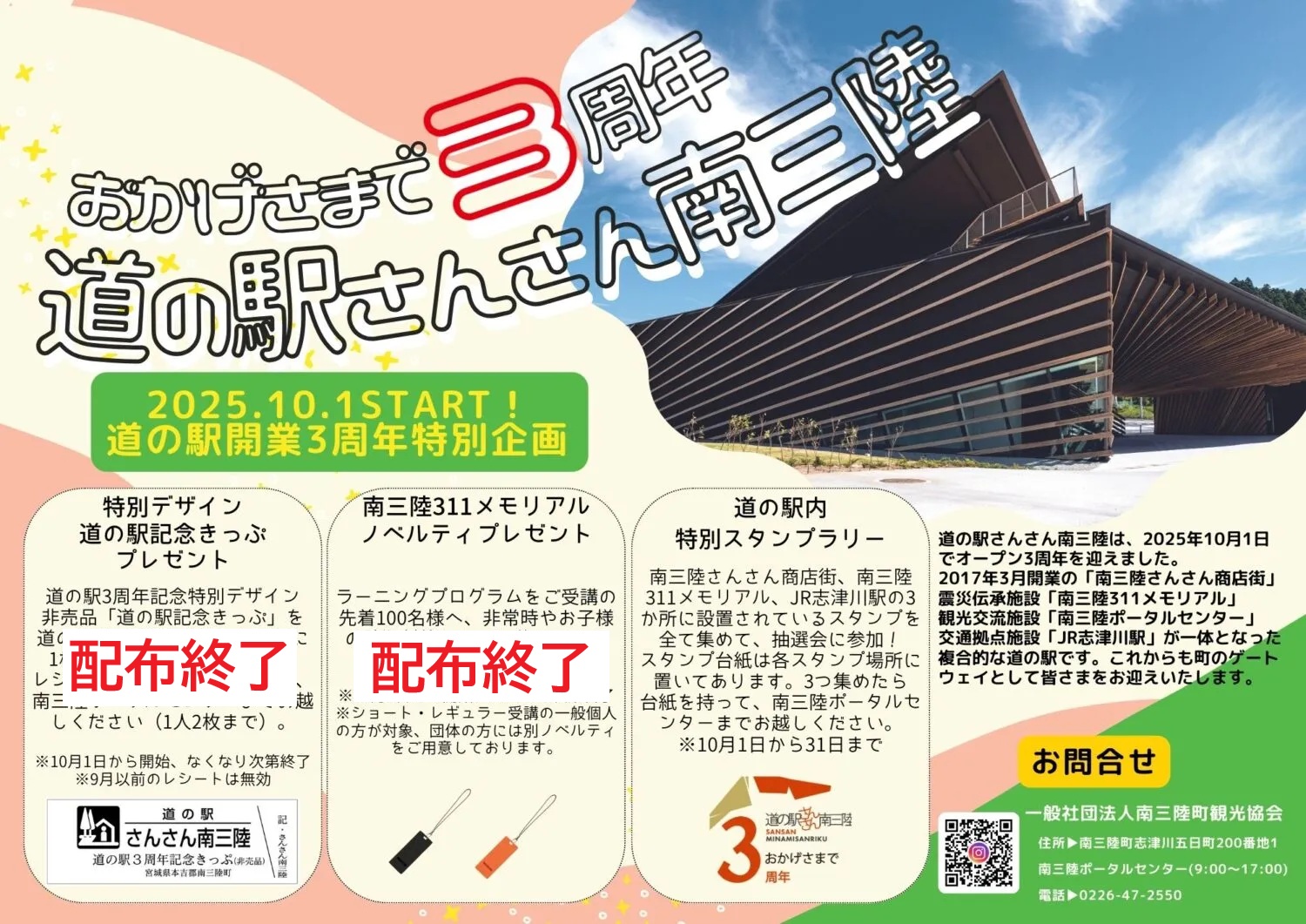 おかげさまで、2025年10月1日で「道の駅さんさん南三陸」はオープンから3年を迎えます!