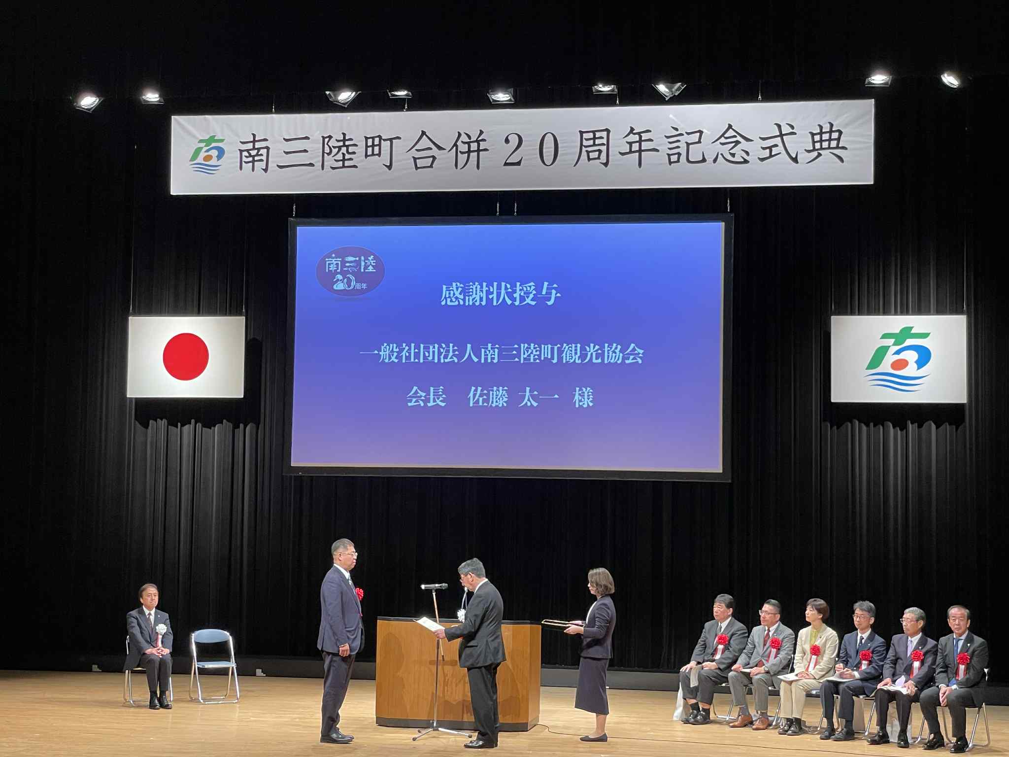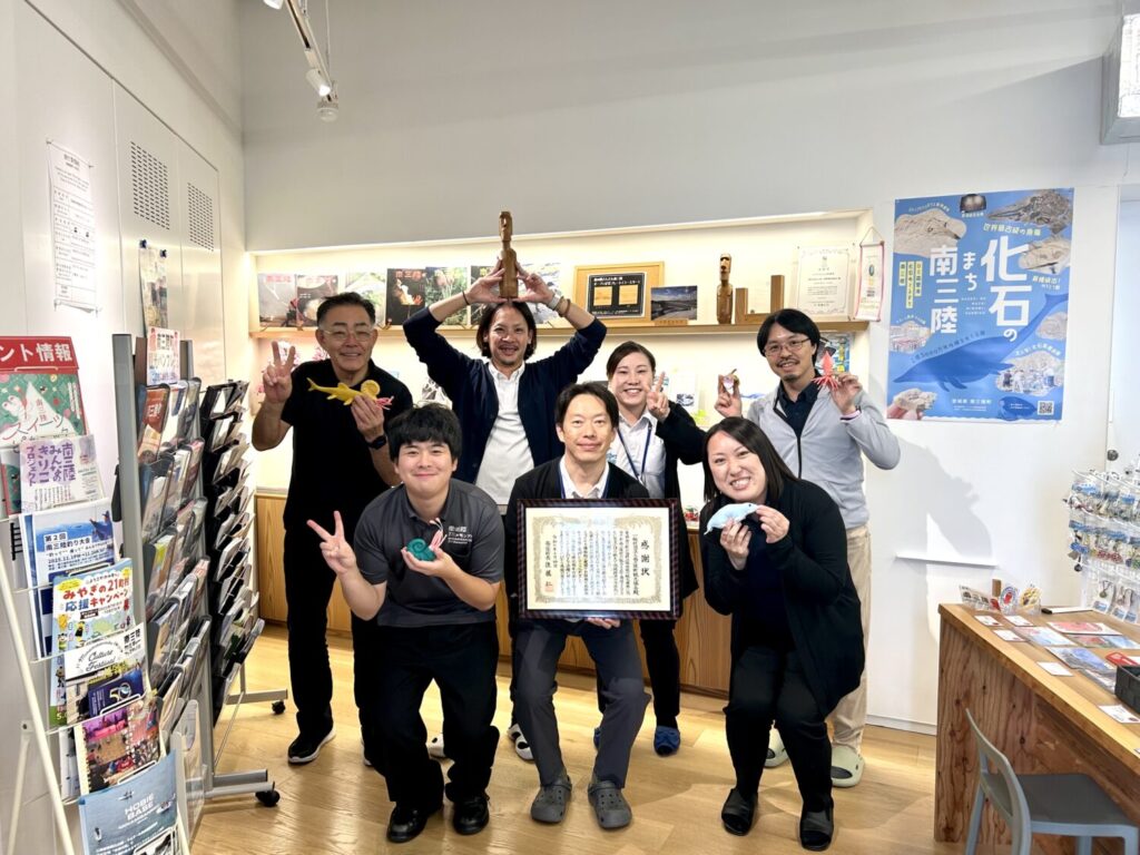 このたび、町の発展に貢献した8つの団体の一つとして、南三陸町観光協会が表彰を受けました。これまで地域の皆さまや関係機関の皆さまに支えられながら活動を続けてこられたことに、心より感謝申し上げます。