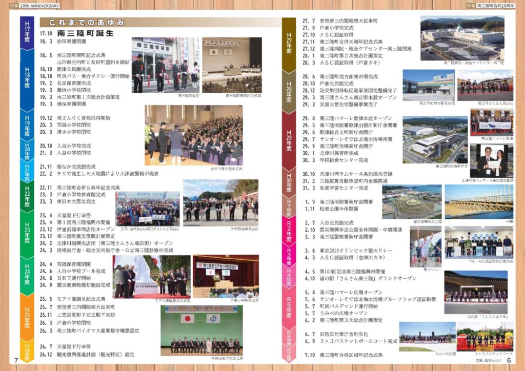 平成17年(2005年)に旧志津川町と旧歌津町が合併して誕生した南三陸町は、今年で20周年を迎えました。町の節目となるこの年を、多くの皆さまに見守っていただきながら迎えられることを誠にうれしく思います。