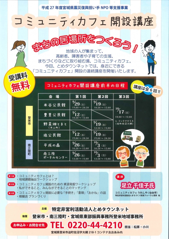 「コミュニティカフェ」開設の連続講座開催いたします。
