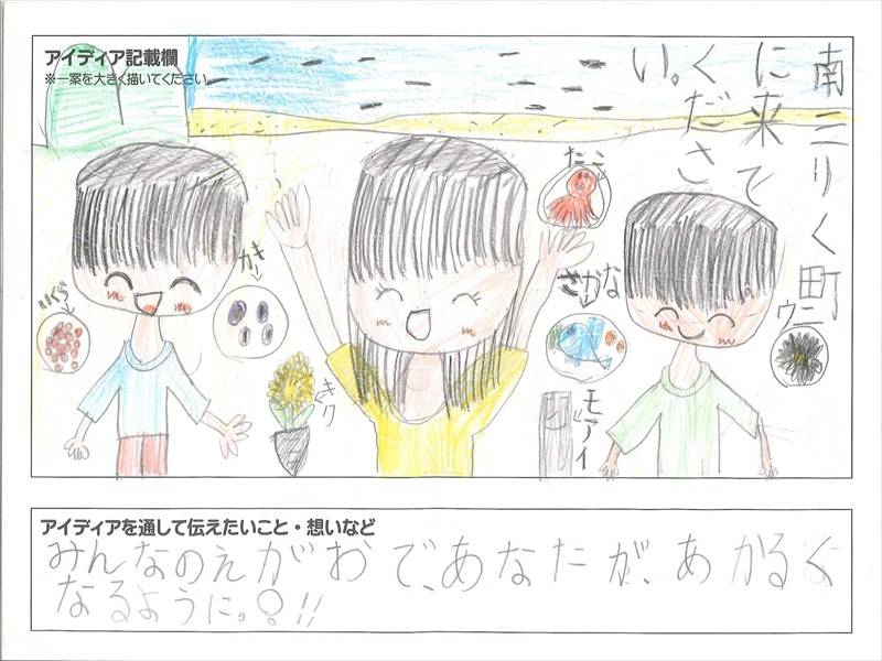 こちらのポスターは町内にアイディアの公募を行い、選ばれたアイディアを形にしたものです。