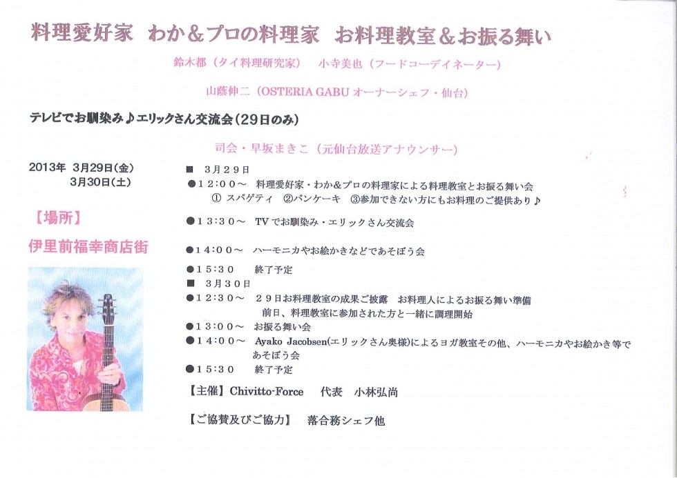 テレビでおなじみ♪エリックさんとの交流会(29日のみ)もありますので