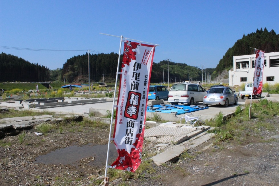 商店街の前を流れる伊里前川では昔ながらの伝統的な方法でしろうお漁が行われています。