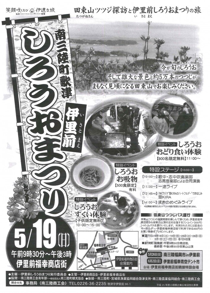 伊里前福幸商店街では今年も春の訪れを告げるしろうおまつりが開催されます