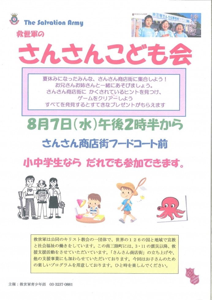 夏休みはさんさん商店街でお兄さんお姉さんと一緒に遊びましょう。