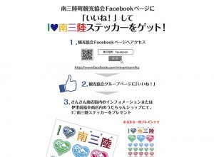 南三陸町観光協会のFacebookページに「いいね!」すると、「I♥南三陸ステッカー」をプレゼントしております。