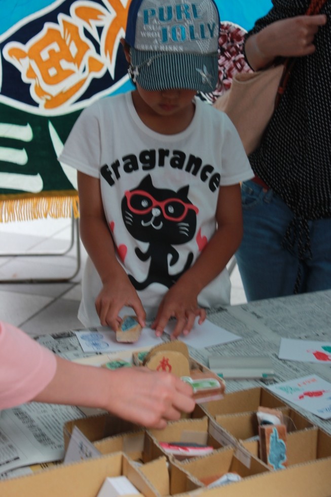 いろいろないきものハンコを捺して、世界で1つのオリジナルハンカチ/てぬぐいを作りましょう♪