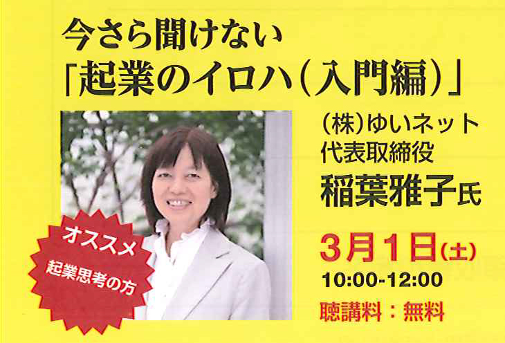 今回、講座していただく方は(株)ゆいネットの代表取締役 稲葉雅子氏による