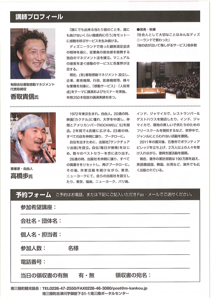 いずれも南三陸ポータルセンターで開催予定です。