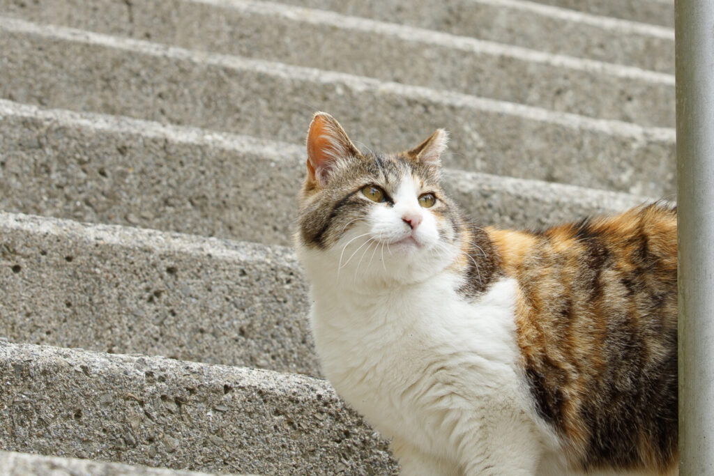 民宿「津の宮荘」では、津の宮荘に住み着いたミケがお出迎えしてくれます。