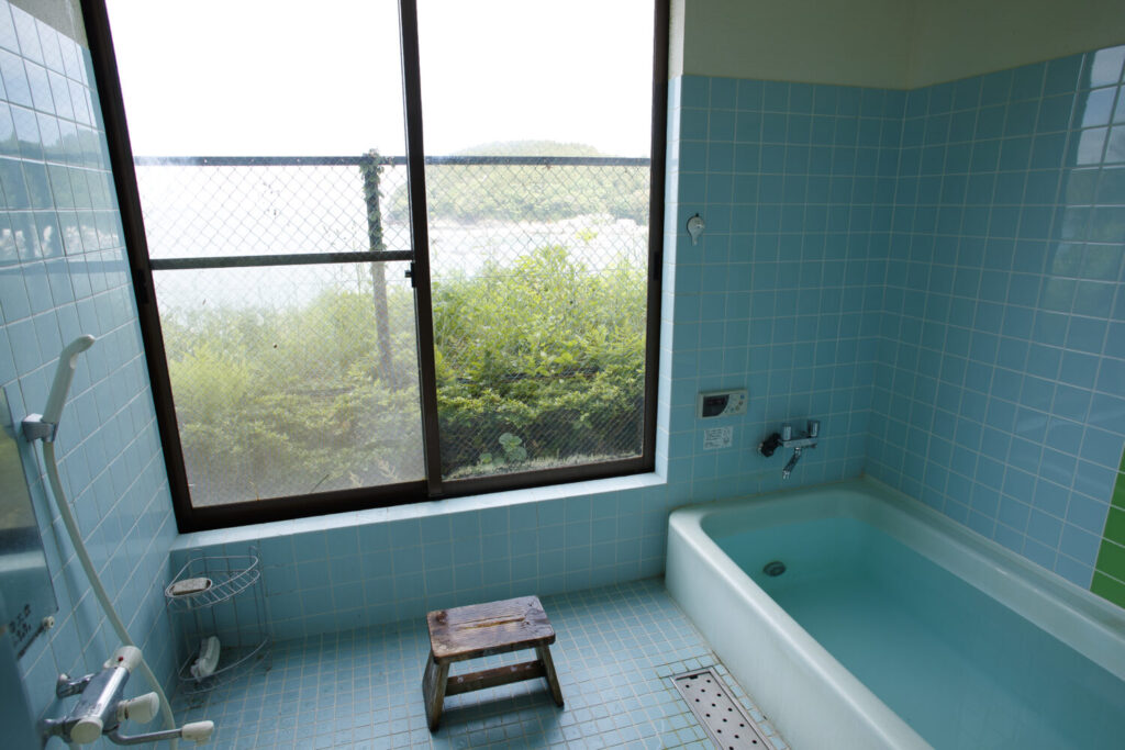 - レトロなお風呂からの海の絶景