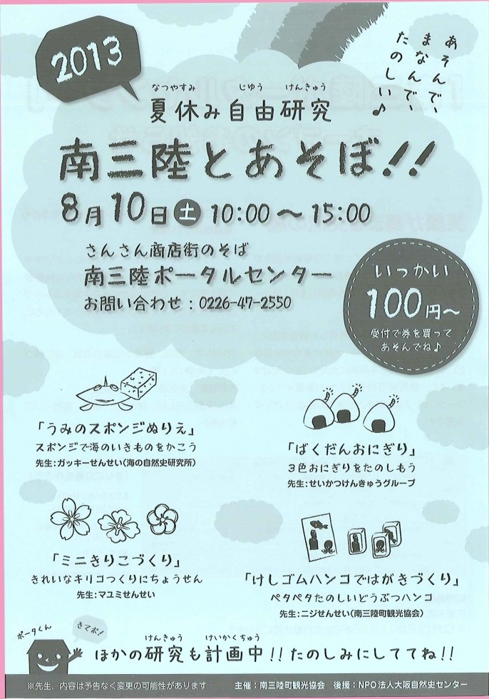 ***2013 夏休み自由研究 南三陸とあそぼ!!*** ■日 時:平成25年8月10日... -
