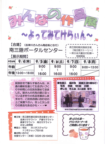 9月4日~8日 みんなの作品展~よってみてけらいん~開催のお知らせ