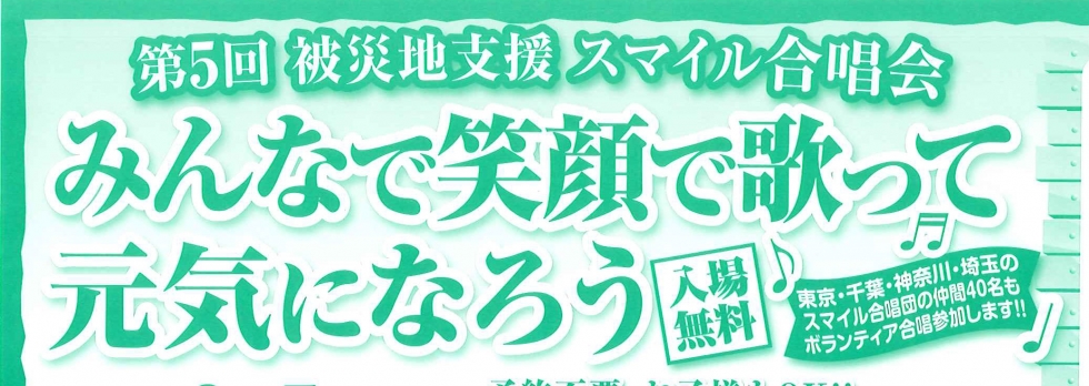 第5回被災地支援スマイル合唱会のおしらせです。 年齢や上手下手を問わず... -