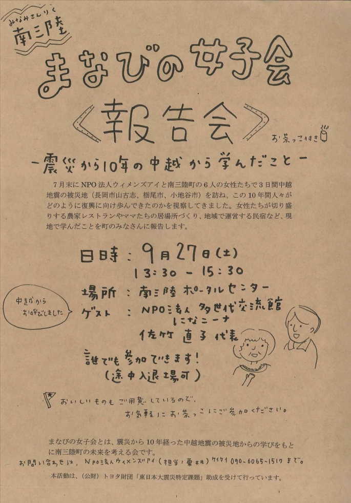 ~震災から10年の中越から学んだこと~ 7月末にNPO法人ウィメンズアイと南三陸... -