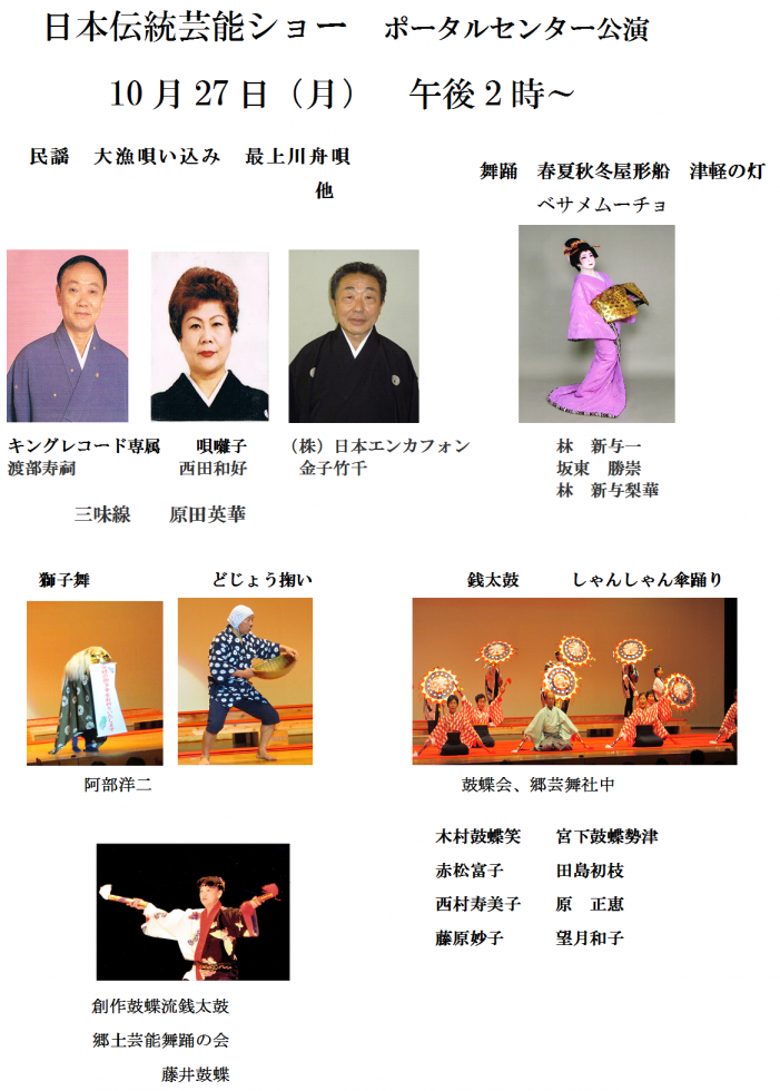 10月27日(月)日本伝統芸能ショー 開催のお知らせ