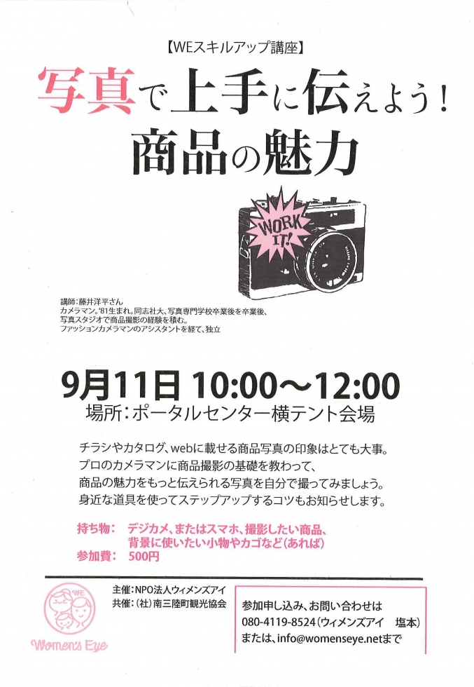 9月11日 写真で上手に伝えよう!商品の魅力 カメラ講習会開催のお知らせ