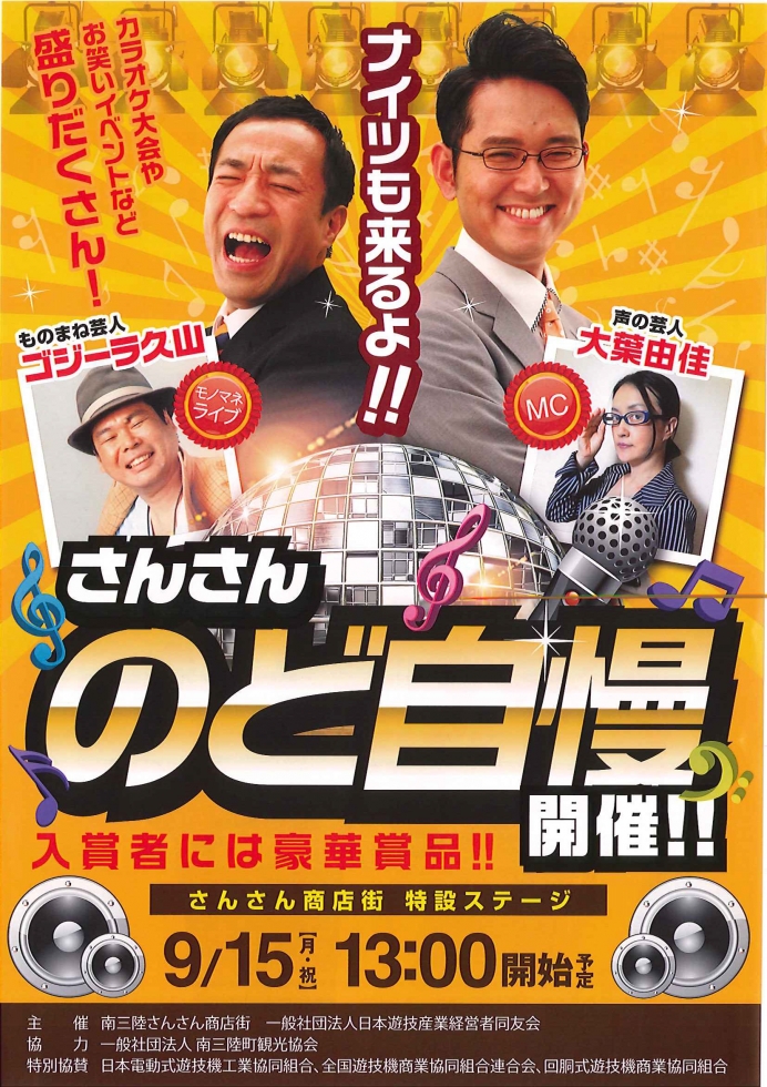 9月15日(月・祝)さんさんのど自慢開催のおしらせ