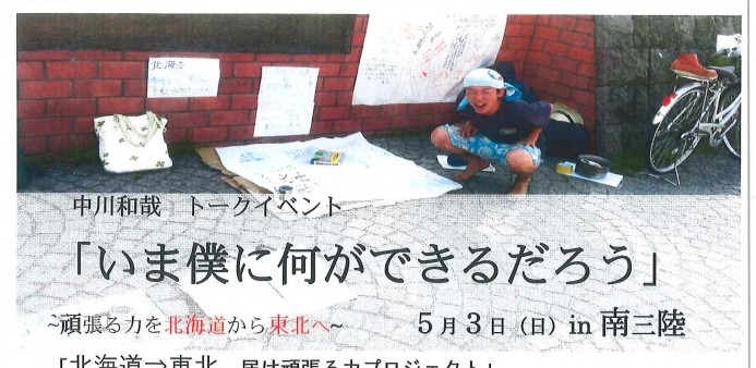 中川和哉 トークイベント 「いま僕に何ができるんだろう」 5月3日(日)in南三陸