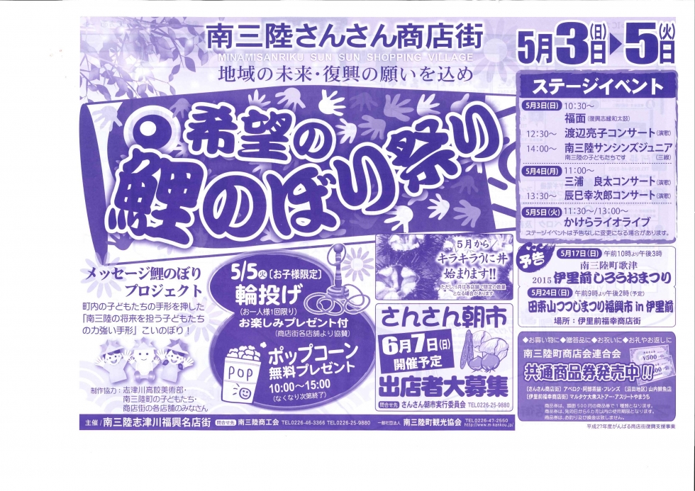 南三陸町歌津 伊里前福幸青空テント市 5/3~5/5 午前10時~午後3時 ★... -