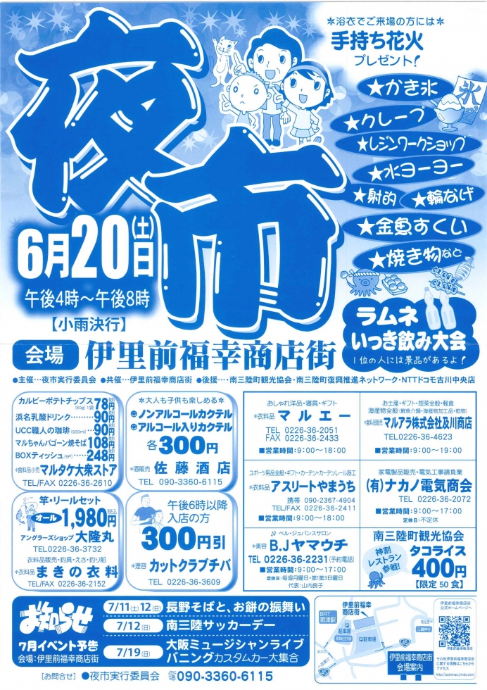 【歌津】6/20 伊里前福幸夜市開催!