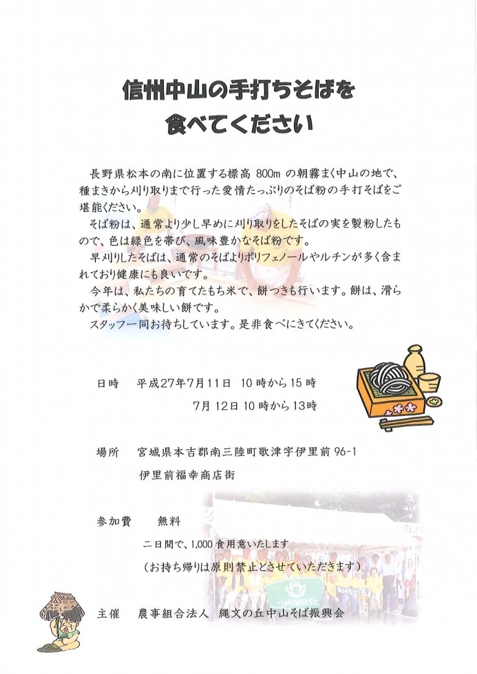 【歌津】信州中山の手打ちそばを食べてください!