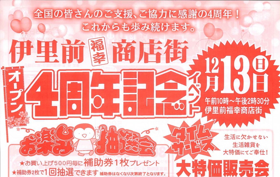 12/13(日) 伊里前福幸商店街オープン4周年記念イベント