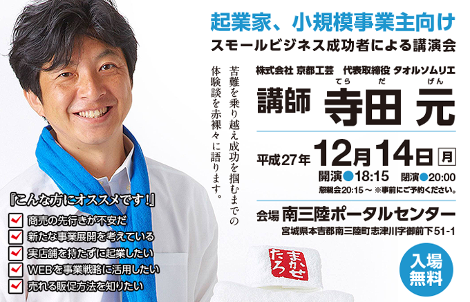 『スモールビジネス成功者による講演会』開催のお知らせ