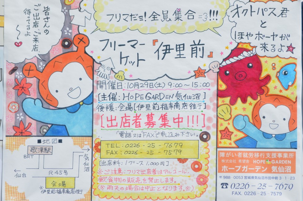 【10/15掲載情報】 当日はオクトパス君、ほやボーヤも登場予定!! フリーマーケット... -