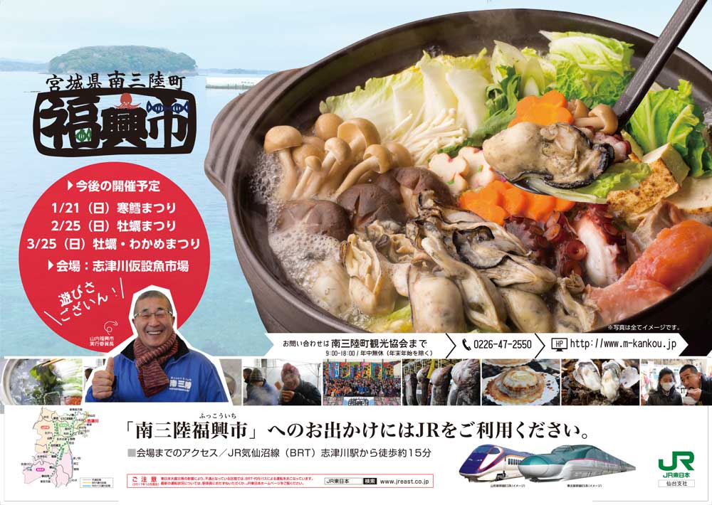 1月25日(木)~27日(日)、JR上野駅にて「宮城産直市」が開催されます。 南三陸... -