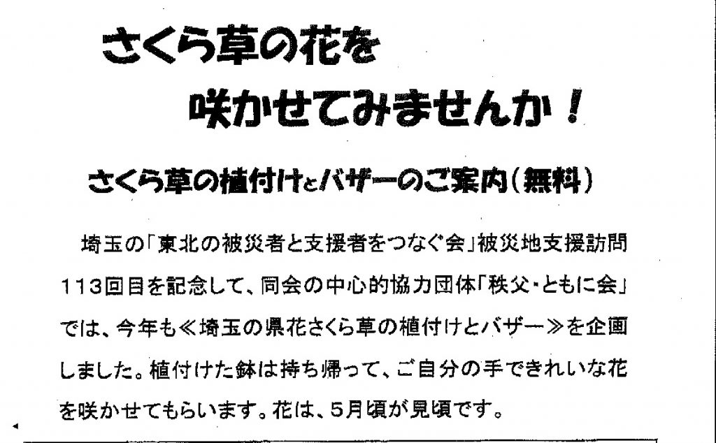 さくら草の植付けとバザーのご案内♫ 日時:H30年3月17日(土曜)午後2時~午後3時3... -