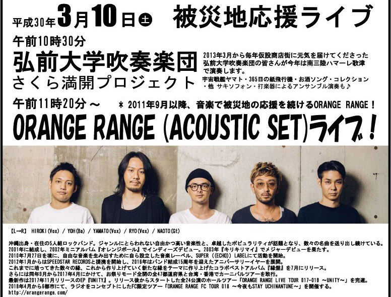 3/10(土)♫被災地応援ライブ開催♫