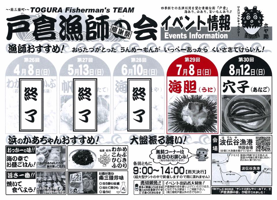 7/8(日) 第29回「戸倉漁師の会 感謝祭」開催のお知らせ