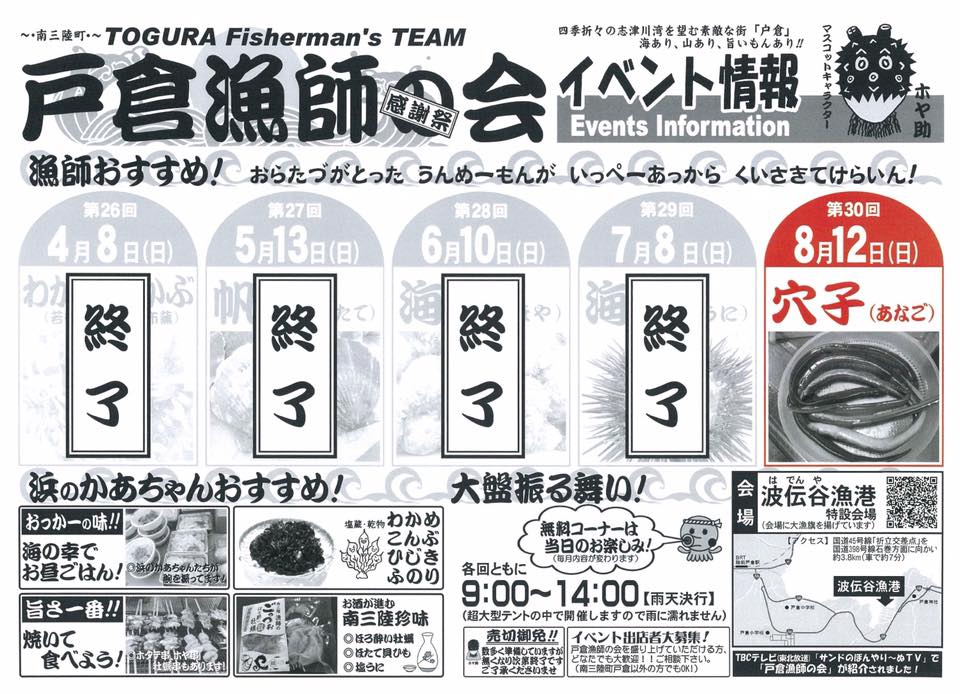 8/12(日) 第30回「戸倉漁師の会 感謝祭」開催のお知らせ