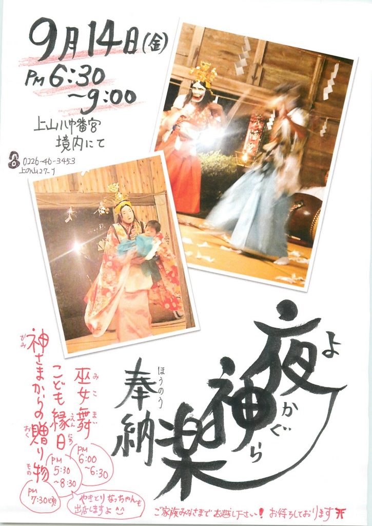 ☆上山八幡宮から秋まつりについてお知らせです☆ 9月14日(金曜日) 宵宮祭 18... -