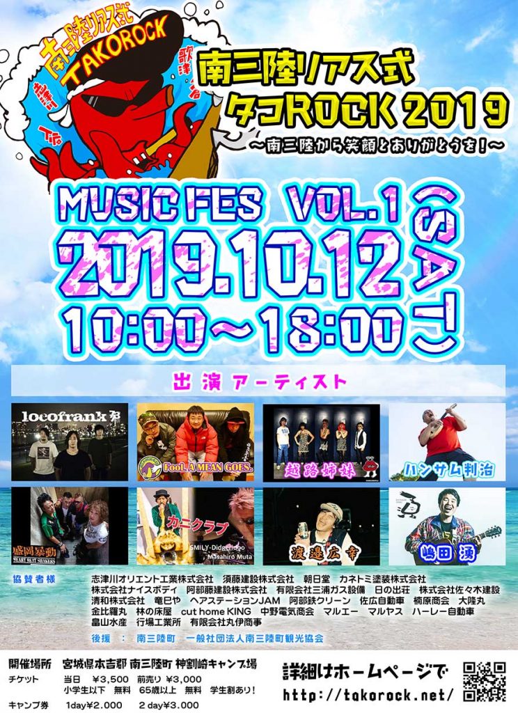 10月12日(土)「南三陸リアス式タコROCK 2019」開催