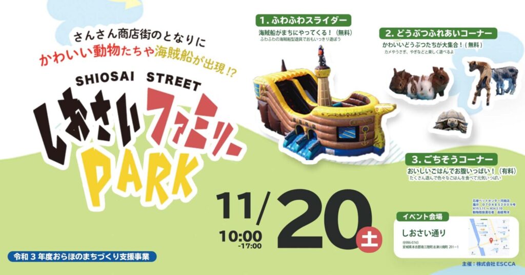 さんさん商店街近くのしおさい通りで、1日限定の公園が開かれます! お子様から大... -