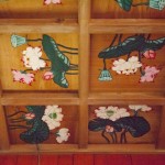 上棟式の矢車に描かれている鶴と亀の絵は、一枚が畳二畳分ほどもある大きな絵だ。猛さんが手がけた建物の数、さよ子さんは制作に一週間以上もかかる矢車を描いてきた。この矢車は、それぞれの家の天井に、そこに記されたご夫婦の名前とともに眠っている。南三陸町の大雄寺の昭和33年の大改修も、猛さんが担当し、大雄寺に設けた飯場にさよ子さんも寝泊まりして、この改修を支えた。そして、そのときに位牌堂の天井に蓮の花の天井画を160枚描いた。45センチ角の板に、つぼみから美しく花を咲かせ、やがて枯れていく花の一生を一枚一枚描いた。
