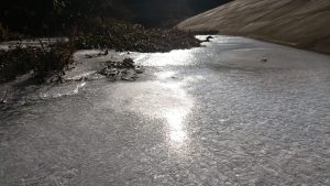 この川自体そこまで横幅などはありませんが、一面に厚い氷が貼っており、
