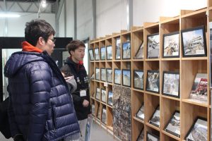 設置されている写真パネルを使い、震災前と当日と今の