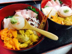 志津川湾で採れた海の幸(ウニ・ホヤ・アワビ・カキ・ホタテ)を