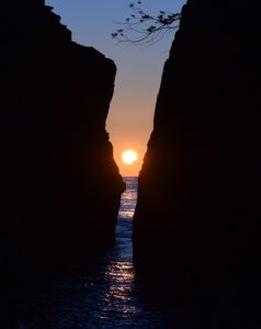 この景色(二つに割れた大岩の間から太陽が昇ってくる)は毎年、2月中旬と10月下旬(どちらも1〜2週間程度)の短い期間の間のみ、見ることができます。特に2月は空気が澄んでいるため、なお鮮明に映ります!!