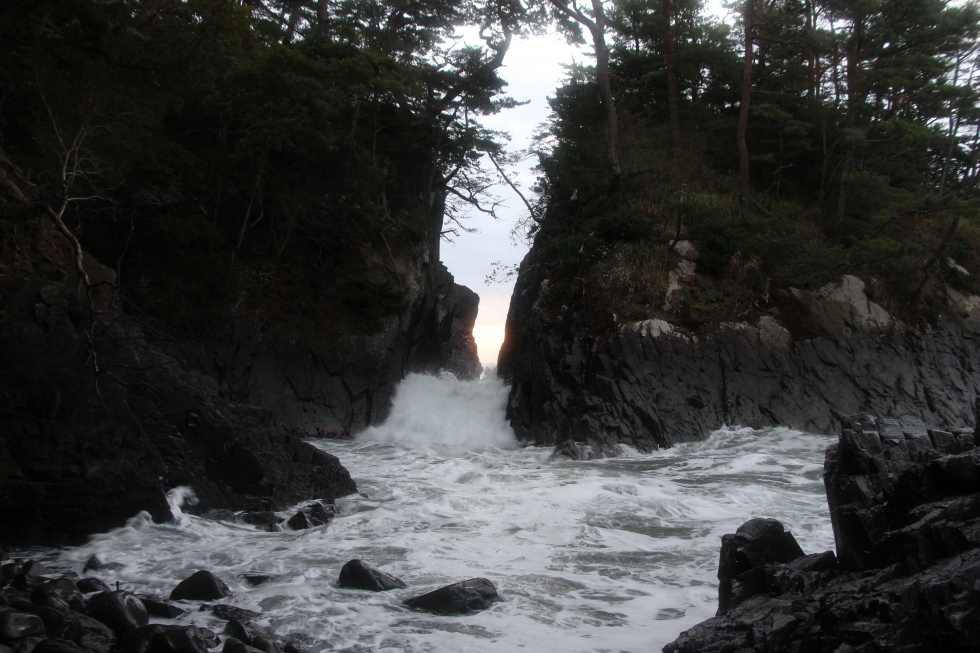 もちろん、日中に見る「神割崎」も大岩の間から太平洋の荒波が流れ込む