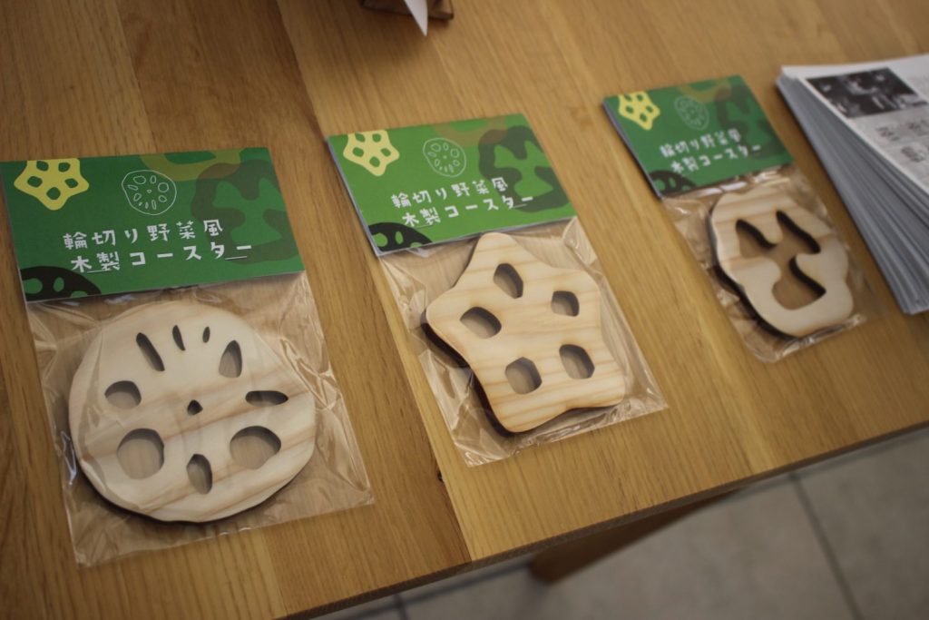 輪切りの野菜風木製コースターとなっていて人気がある商品でございます!