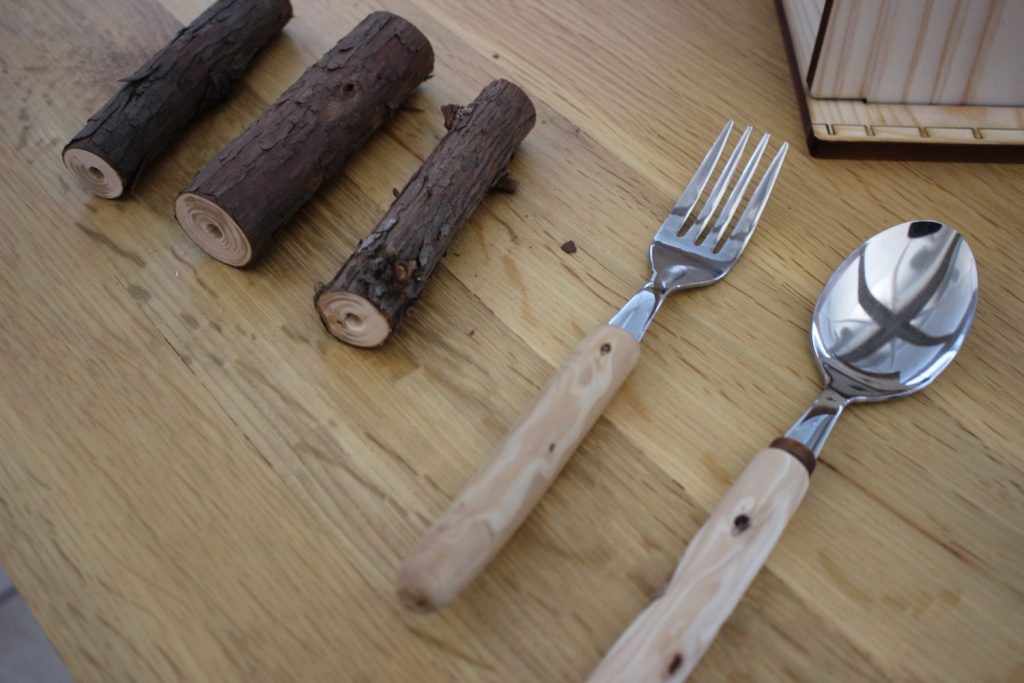 こちらは購入ではなく林地残材を使ったスプーンとフォークづくりの