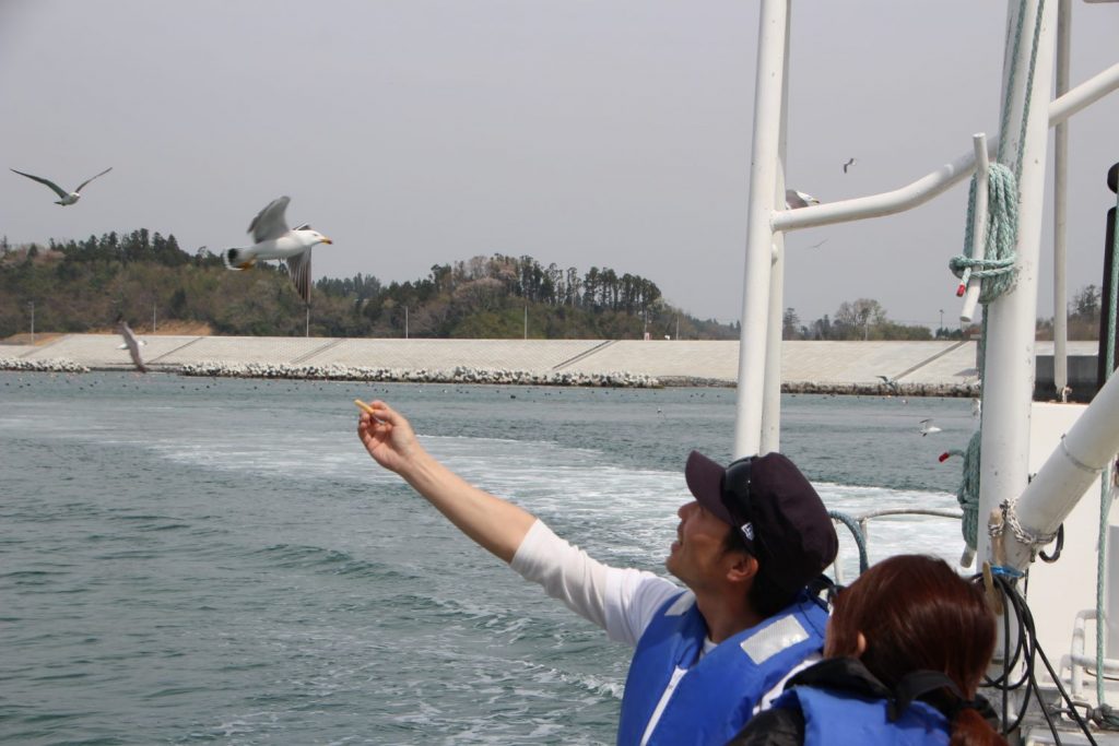 海上にはウミネコやカモメが乱舞し、お客様は大喜び!