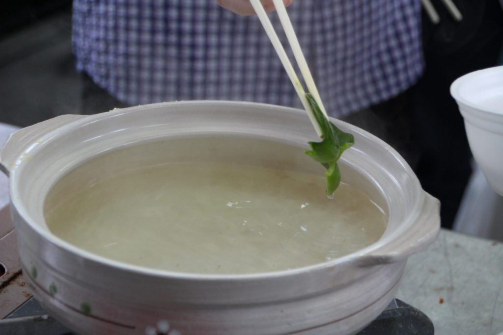 最後に収穫したメカブとワカメをしゃぶしゃぶにしていただきます。