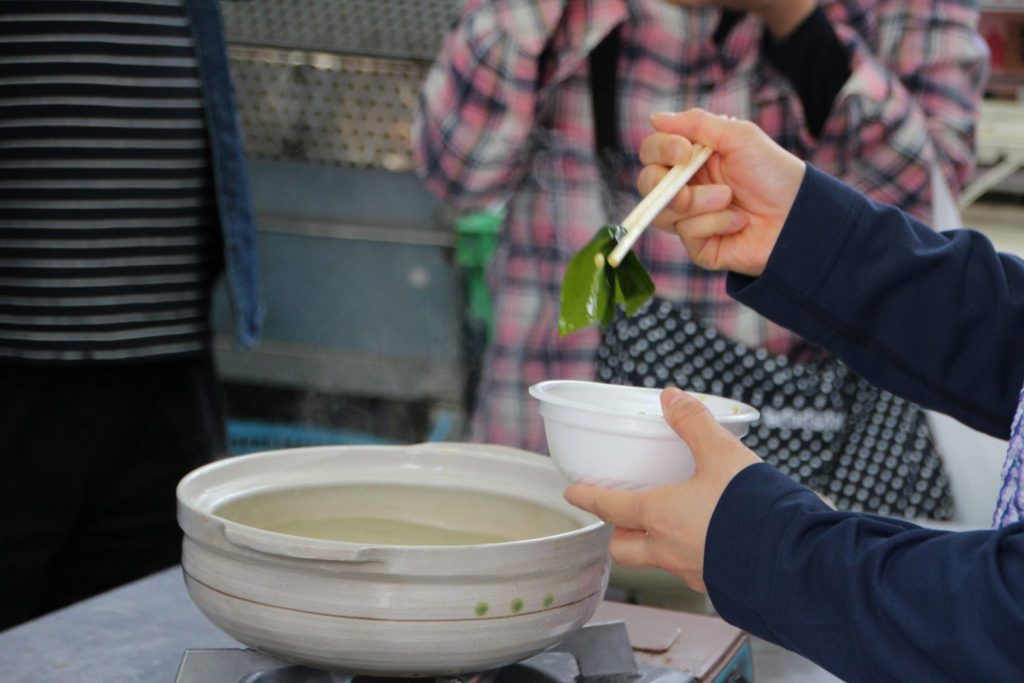 お湯にくぐらせた瞬間に茶色から鮮やかな緑色に変化する様子を見て、